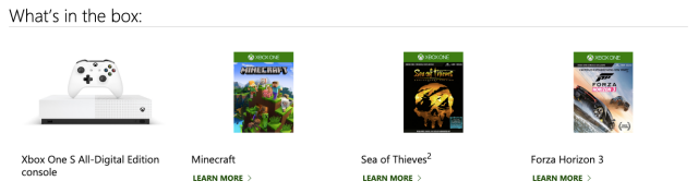 Xbox One S All-Digital Edition은 모든 게임의 저장 및 백업은 클라우드 상에서 이루어지고, 콘텐츠가 디지털 라이브러리에 저장되므로 어떠한 Xbox One 콘솔에서든 플레이할 수 있습니다. 또, 새로운 게임이 출시되면 바로 설치해서 게임을 즐길 수도 있고, Minecraft, Sea of Thieves, Forza Horizon3, 세 가지 게임이 번들로 포함되어 있어 별도로 게임을 설치 할 필요 없이 바로 플레이할 수 있습니다.
