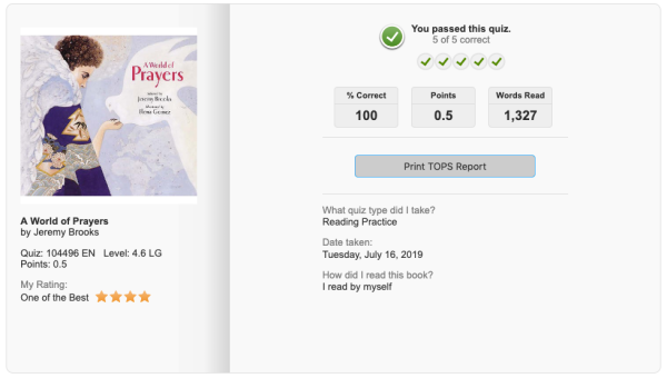 우리 가족은 아들이 영어책을 한권 읽을 때마다 제대로 이해하고 읽었는지 책에 있는 내용에 대한 퀴즈를 풀어야 하기 때문에 가능하면 정독을 하도록 코칭했습니다.