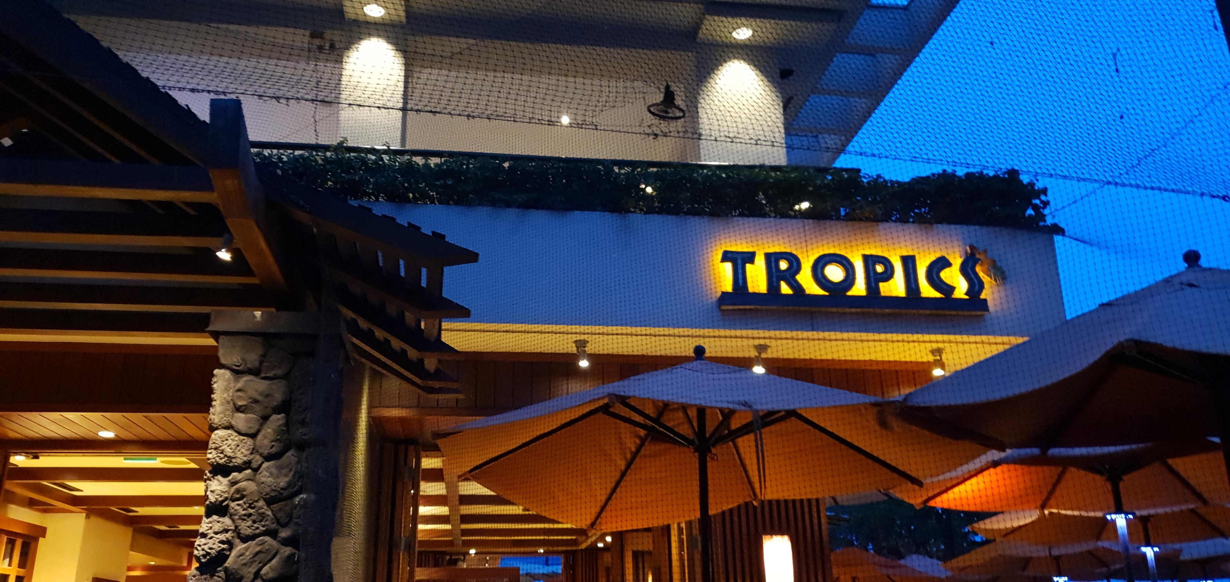트로픽스 바&그릴(Tropics Bar & Grill)은 힐튼 하와이안 빌리지 와이키키 리조트와 카하나모쿠 비치가 마주하고 있는 곳에 위치해 있어서 외부 테이블에 앉으면 바다를 바라보면서 식사를 할 수 있습니다. 매주 금요일 저녁에는 힐튼 하와이안 빌리지에서 불꽃놀이를 하는데 트로픽스에서 식사를 하면서 볼 수 있어서 여행객들에게 인기가 많습니다.