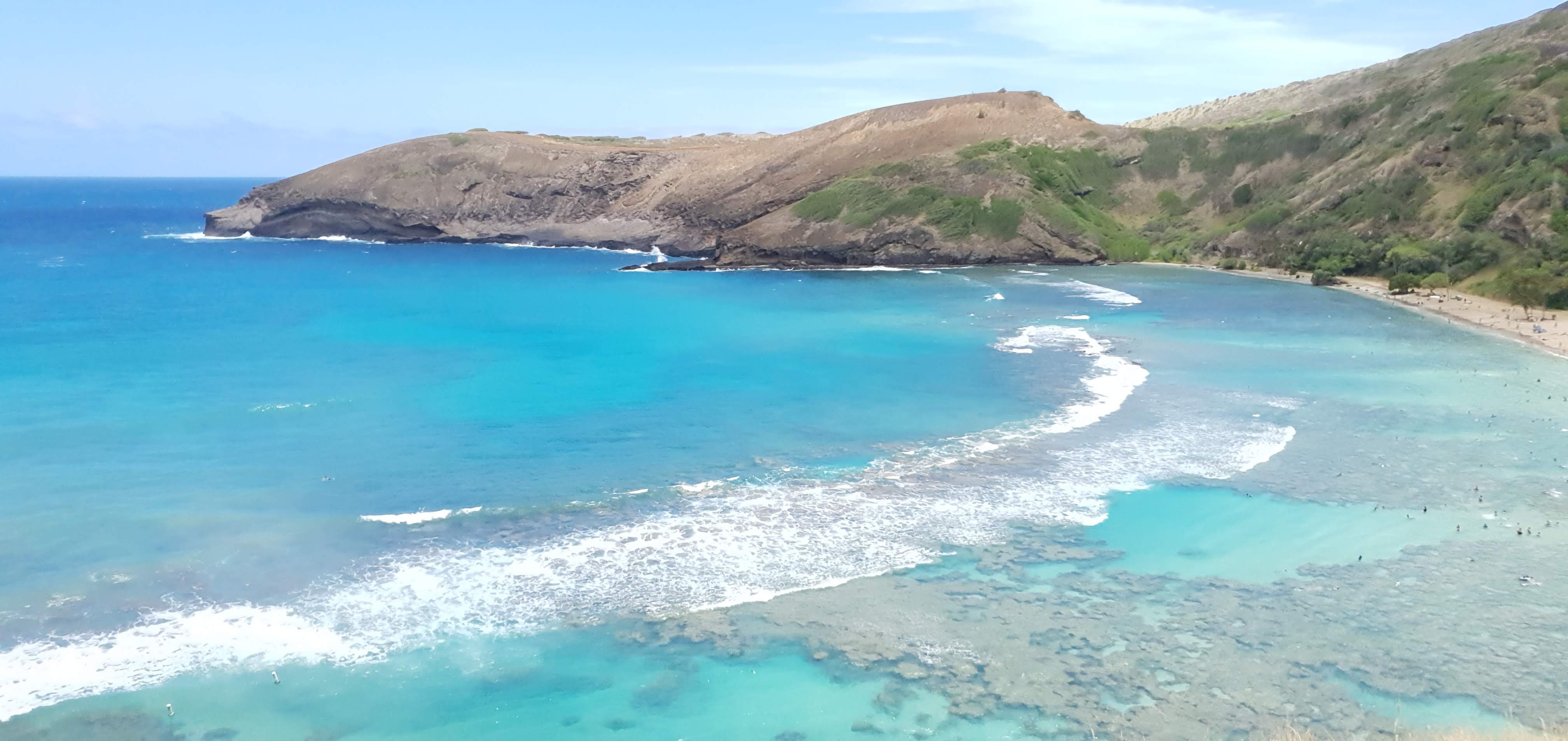 하나우마 베이에 도착해 보면 왜 하와이에 가면 꼭 하나우마 베이를 가봐야 한다고 하시는지 아실 수 있으실 겁니다. 에메랄드 빛 푸른 바다와 시원한 바람을 맞고 있으면 아무것도 하지 않아도 힐링이 되는 기분을 느끼실 수 있습니다.