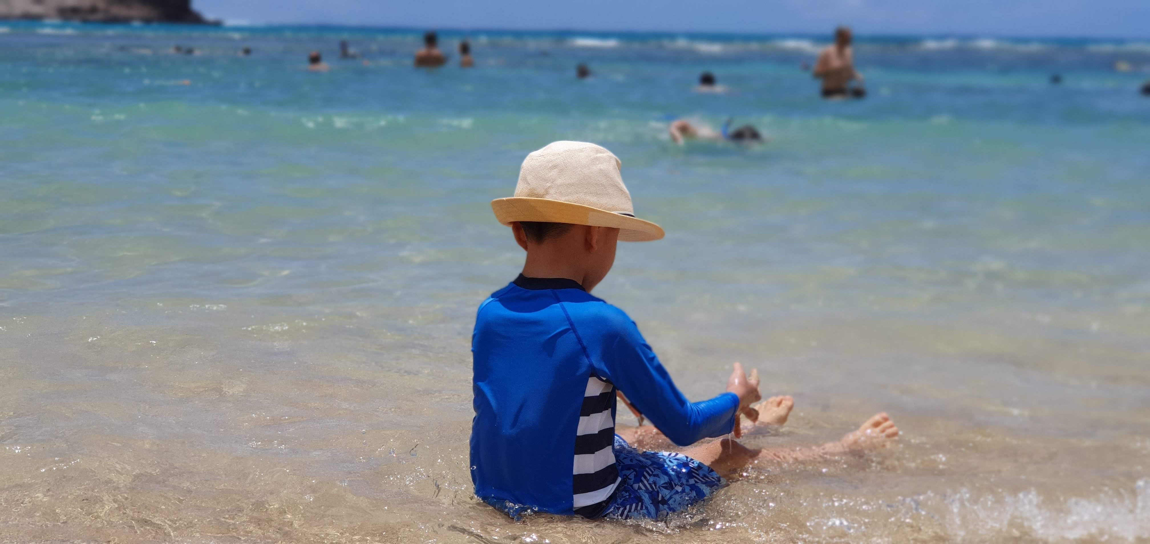 여덟 살인 우리 아들은 얕은 곳에서 수영도 하고, 백사장에서 모래성도 쌓고 재밌게 놀았습니다. 아들은 하와이 여행 중에 하나우마 베이에서 물놀이한 것이 가장 재미있었다고 합니다.