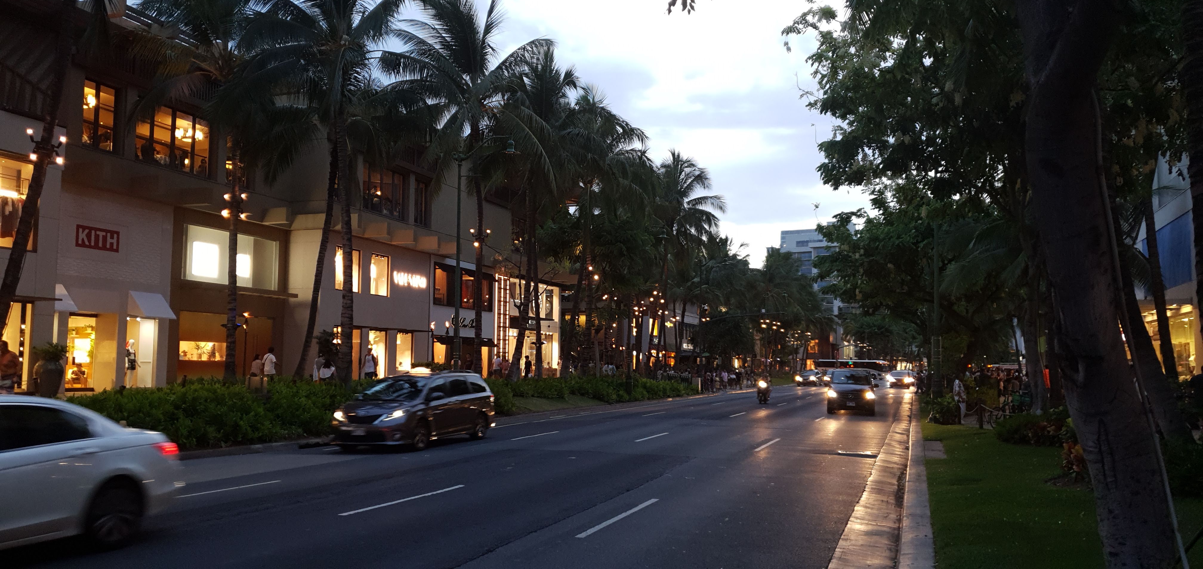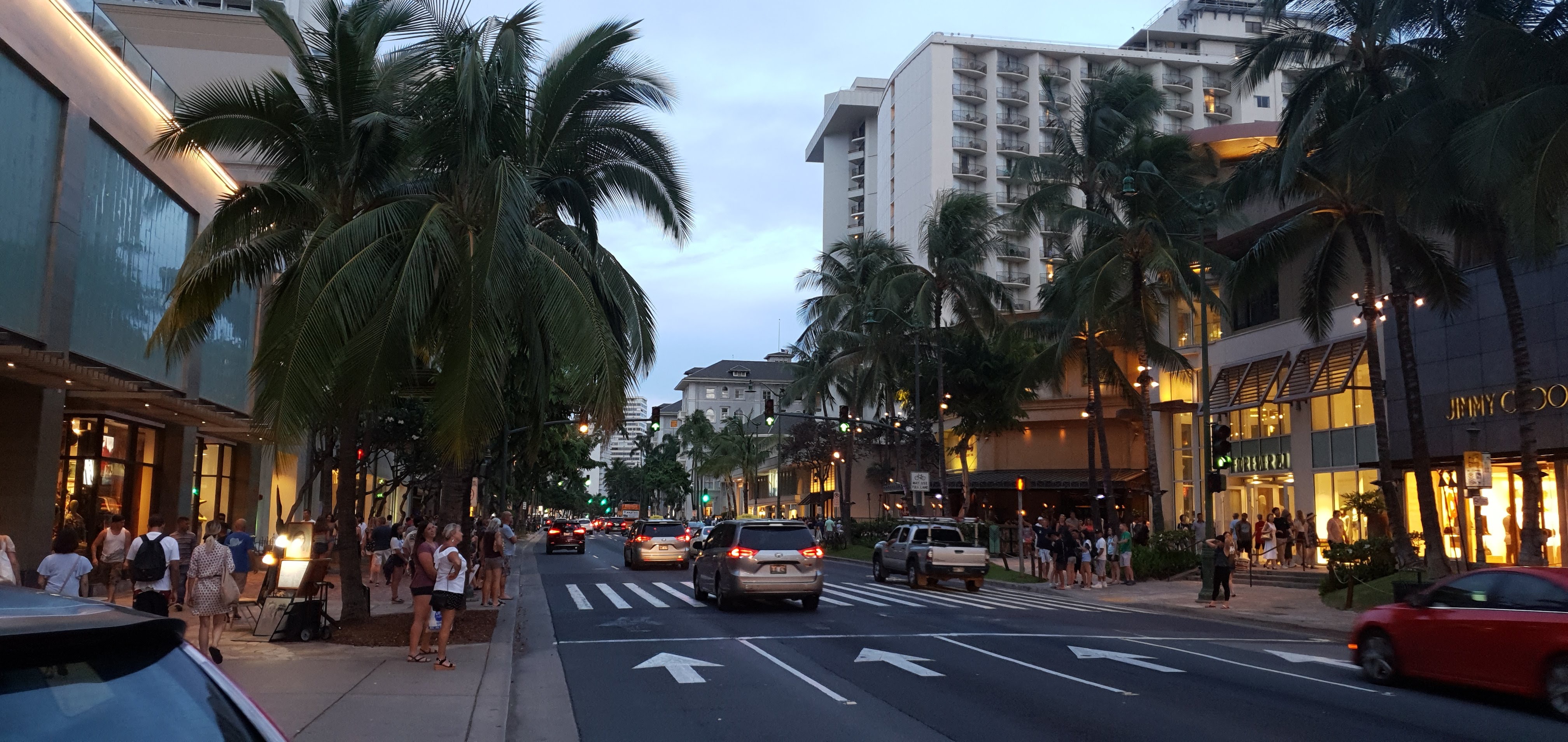 가볍게(?) 식사를 마치고 나온 우리 가족은 배도 꺼트릴 겸해서 칼라카우아 애비뉴에 있는 명품샵을 보면서 밤거리를 거닐며 프린스 와이키키 호텔로 돌아왔습니다. 치즈케익팩토리에서 호텔까지는 걸어서 20분 정도 밖에 안되는 거리라서 걸을만 했는데 막판에 아들이 오전에 수영을 해서 피곤했는지 업어달라고 하는 바람에 조금 힘들었습니다.