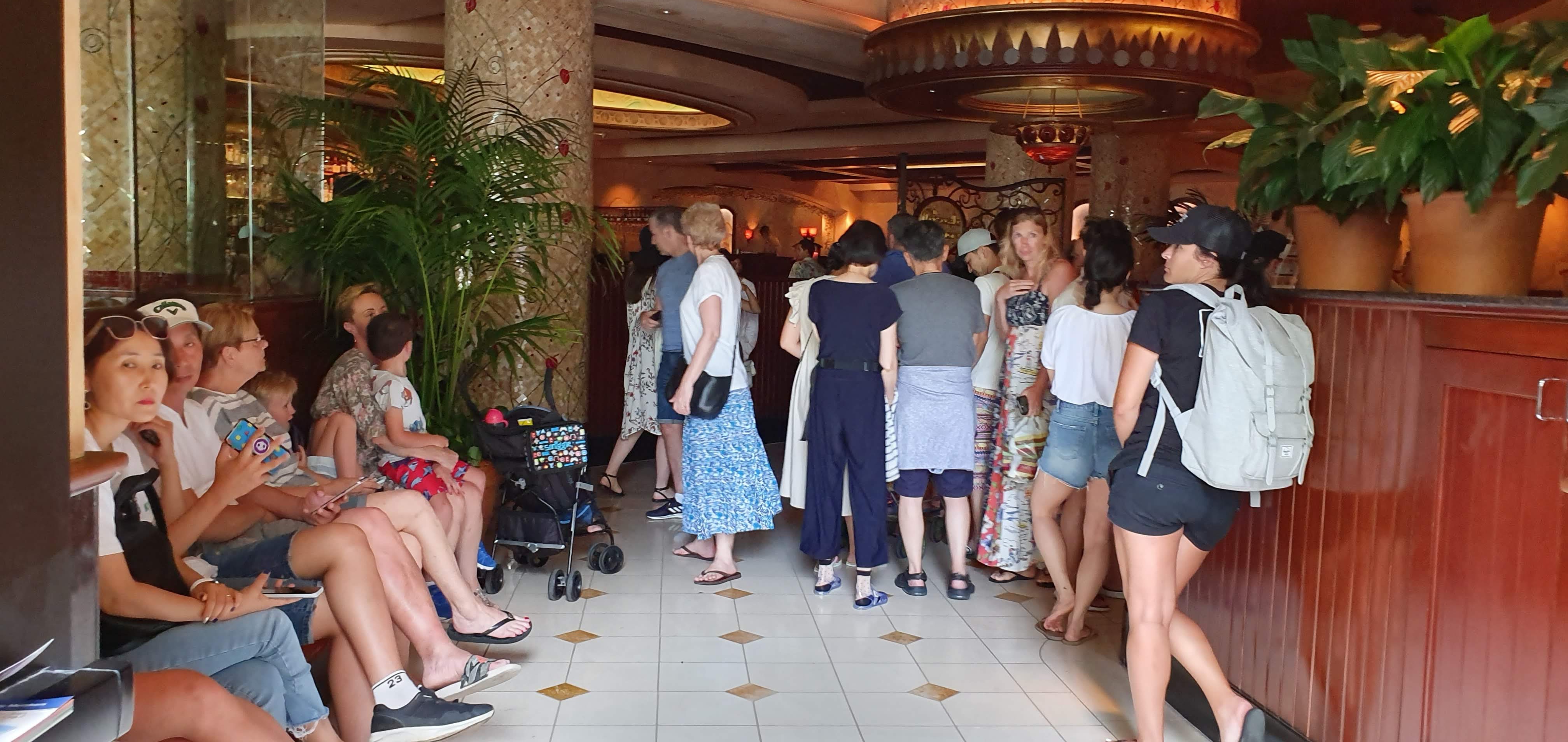치즈케익팩토리 레스토랑은 밖에서 보면 그렇게 크지 않아 보이지만 입구 쪽으로 가면 줄을 서서 순서를 기다리는 사람들이 어마어마하게 많습니다. 저희가 치즈케익팩토리 레스토랑에 간 것이 오후 5시 정도밖에 되지 않았지만 그 시간에도 많은 사람들이 줄을 서고 기다리고 있었습니다. 카운터에서 인원수와 대기자 이름을 얘기하고 진동벨을 받았는데 15분 정도 기다리면 될 것이라고 했지만 30분 정도는 기다린 것 같습니다.