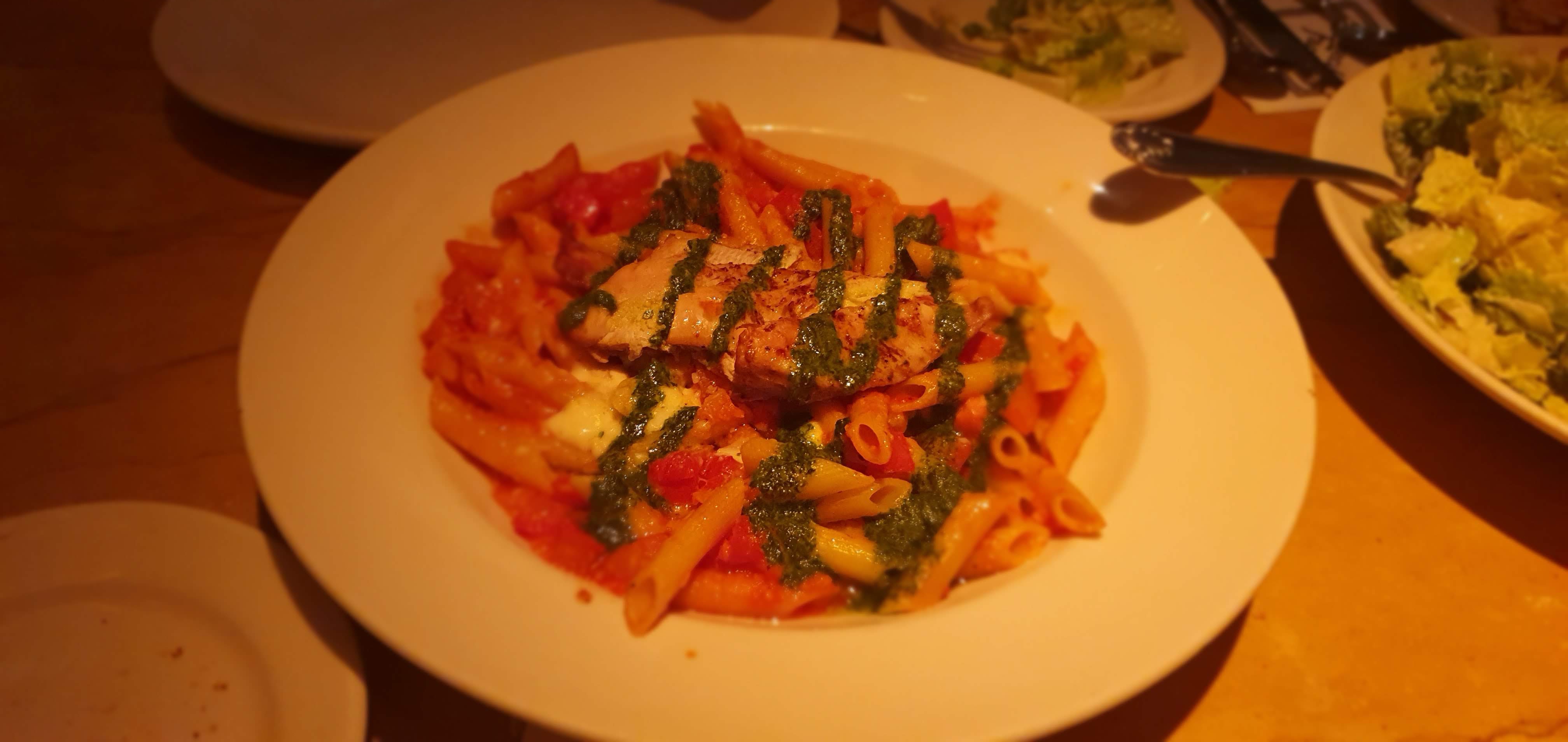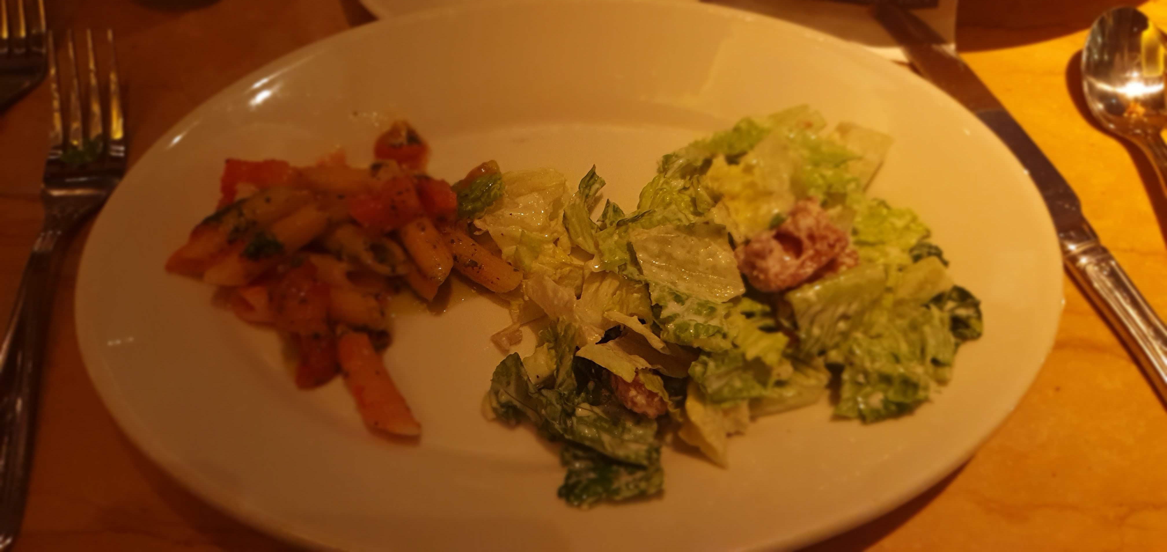 우리 가족은 배가 고픈 관계로 식사를 하고, 후식으로 먹을 계획으로 필렛 미그넌 스테이크, 토마토 바질 파스타, 올드 패션 버거, 시저 샐러드 그리고 우리 아들을 위한 키즈 치킨 스트립을 주문했습니다.