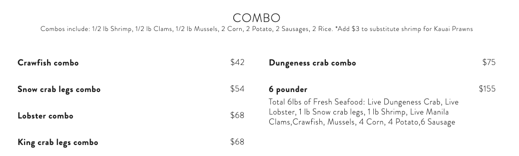키킨 케이준에서는 랍스타와 크랩 등의 씨푸드와 치즈스틱이나 감자튀김 같은 다양한 메뉴를 판매하고 있었습니다. 우리 가족은 배도 고팠고, 5명이라 한국인 직원이 추천해 주시는 씨푸드 콤보 6파운드 메뉴로 주문을 했습니다.