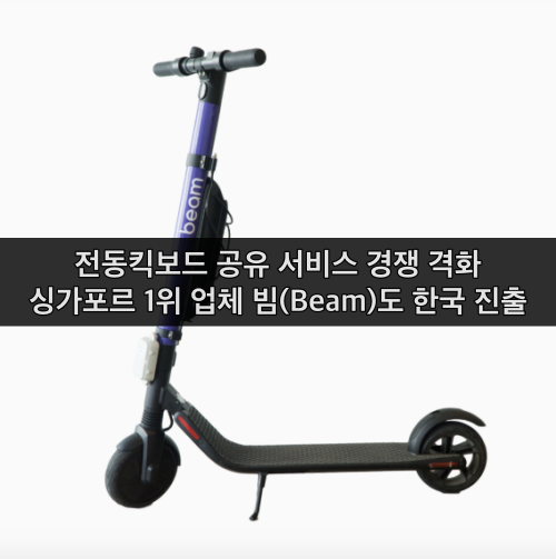 싱가포르 1위 전동킥보드 공유 서비스 업체인 빔(Beam)이 한국 진출을 선언한데 이어 국내 업체인 스윙(SWING)이 경쟁업체인 라이드(RYDE)를 인수합병 함에 따라 국내 전동킥보드 공유 서비스 시장 경쟁이 점점 더 격화되고 있습니다.