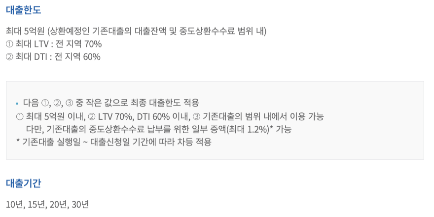 서민형 안심전환대출 대출한도 및 상환방식