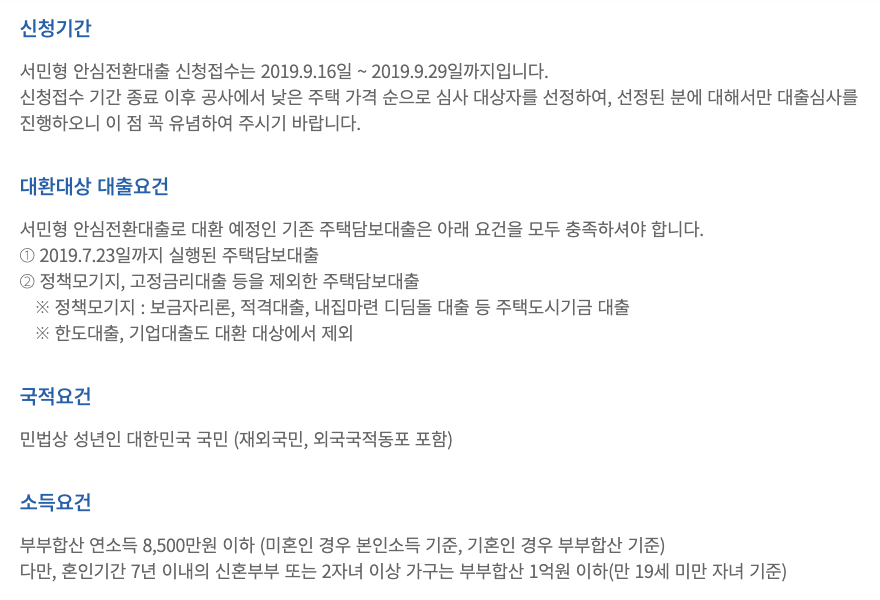 서민형 안심전환대출 신청대상 및 대출조건