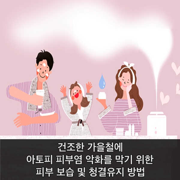 대기가 건조해지고 일교차가 커지는 가을철에는 피부가 건조해지기 때문에 아토피, 천식, 알레르기 비염 등의 알레르기 질환이 심해질 수 있습니다. 이 중에서 아토피 악화를 막기 위한 피부보습 및 청결유지 방법에 대해서 소개해 드리겠습니다.