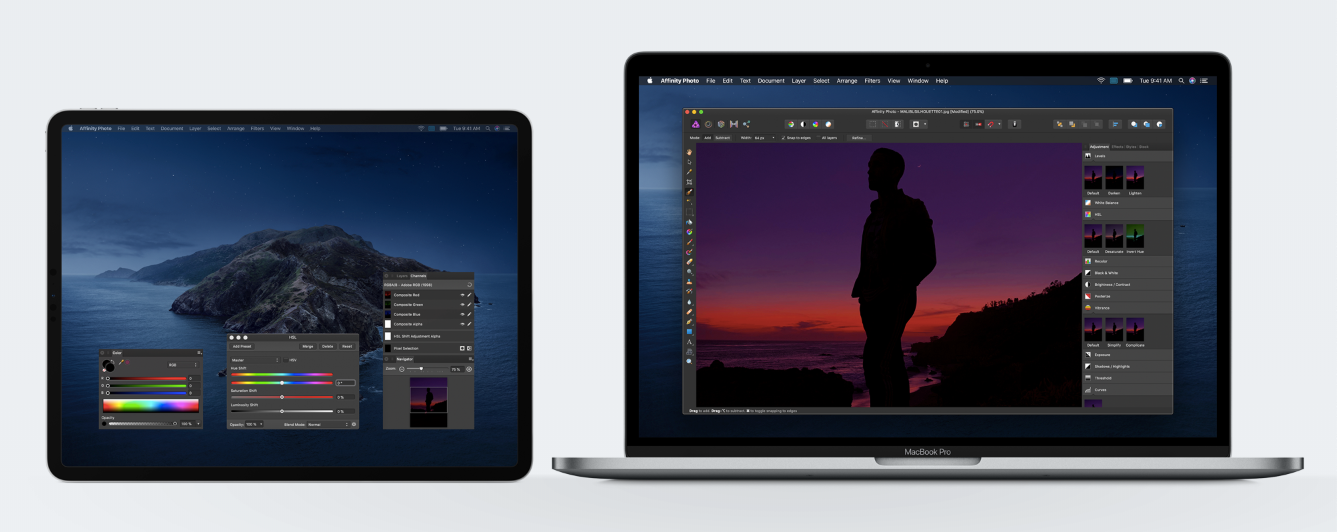 이번 Apple MacOS Catalina 에서 가장 눈에 띄는 것은 아이패드를 Mac의 보조 디스플레이로 활용할 수 있는 '사이트카(Sidecar)' 기능입니다. 사이드카 기능을 활용하면 한 가지 앱에서 작업하면서 다른 앱을 참고하거나, Mac 화면에 작업 중인 그림을 띄워놓고 아이패드에 떠 있는 여러 툴과 팔레트를 사용할 수도 있습니다. 특히 Apple Pencil을 활용해 Illustrator에서 디자인 작업이나 Affinity Photo에서 사진을 편집할 때 사이트카 기능을 활용하면 정밀하고, 편리하게 작업을 할 수도 있습니다.