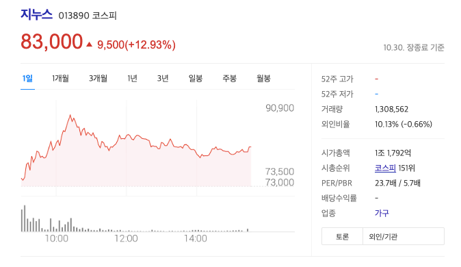 아마존에서 매트리스 카테고리에 1위 제품을 줄줄이 올리며 주목을 받았으나 공모 과정에서 흥행에 실패했었던 지누스도 오늘 상장과 동시에 상한가를 기록하며 시초가 7만 3천 원에서 12.93%(9500원) 오른 8만 3000원에 거래를 마쳤습니다.