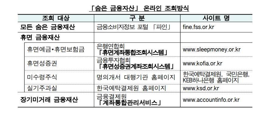 숨은 금융자산 찾기 방법