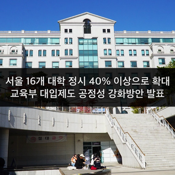 이르면 2022학년도 대입(현재 고1 적용)부터 서울대 등 서울 소재 주요 16개 대학의 대입 수능 정시 선발 비율이 40% 이상으로 높아질 것으로 보입니다.