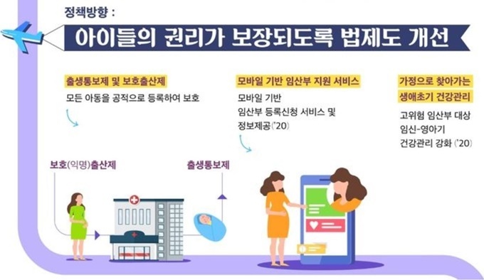 언어 학습장애 등을 예방할 수 있는 영유아 검진이 강화되고, 모바일 기기 등을 활용해 아동의 운동량이나 영양섭취 상태 등을 관리할 수 있는 아동 모바일 헬스케어 시범사업이 진행됩니다. 또, 의료기관이 출산한 아동을 국가기관에 통보하는 '출생통보제'를 도입하여 누락된 출생 아동이 없도록 관리를 강화할 예정입니다. 이와 함께 2022년까지 전국 시군구에 사회복지직 공무원을 확대 배차하여 학대 위기에 처해 있는 아동을 사전에 파악하고, 고위험군 가정의 회복을 돕도록 할 예정입니다.