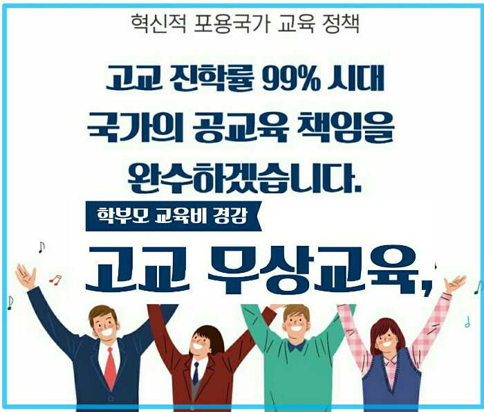 현재 고등학교 3학년에게 적용되는 고등학교 무상교육 혜택이 2020년부터는 고등학교 2학년까지 확대 시행됩니다. 앞으로 고등학교 무상교육은 점차 확대되어 2021년에는 전 학년에게 적용될 예정입니다.