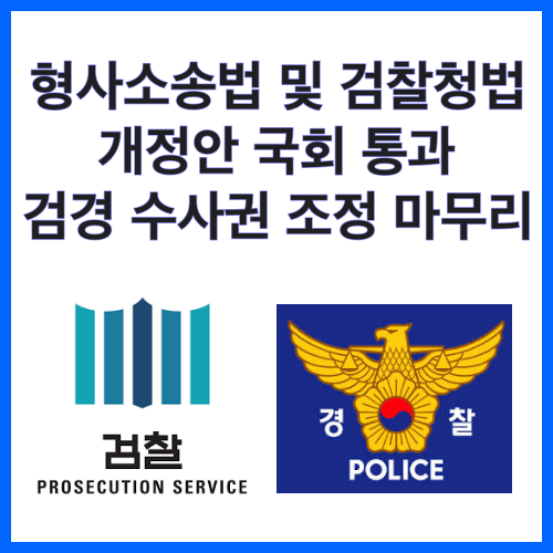 이로써 검찰의 수사지휘권이 폐지되고, 경찰이 수사 종결권까지 갖게 되면서 1954년 형사소송법 제정 66만에 검찰과 경찰의 상하 수직적 관계에서 상호 협력 관계로 전환되는 등의 일대 변화가 예상되고 있습니다. 또, 경철 수사과정에서 변호인 선임이 활성화 되고, 형사사법체계의 무게추가 검찰에서 법원으로 이동하는 등 국민의 삶에도 큰 변화가 예상됩니다.