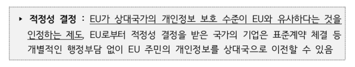 EU 측은 그간 개정 개인정보보호법의 상세 내용을 검토하면서 ‘국회에서 통과되면 적정성 결정을 할 수 있다’는 입장을 지속적으로 표명해 온 터라 긍정적으로 협력이 진행될 것으로 예상됩니다.