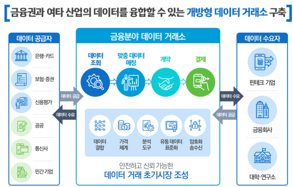 디지털 시대 핵심자원인 데이터가 안전하게 원활히 공급될 수 있는 데이터 유통 생태계가 금융분야에서 선도적으로 구축될 경우 데이터 거래를 통한 금융분야 빅데이터 활용 확대 및 금융과 이종 산업 간 융합을 촉진하여 새로운 성장 기틀이 마련될 것으로 보입니다.