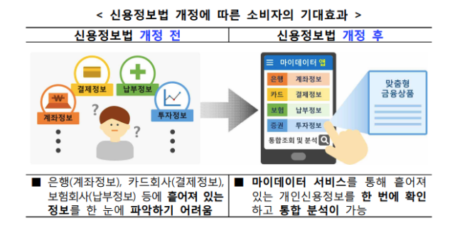 지난해 국회 본회의를 통과 한 신용정보법 개정안이 오는 8월 5일부터 시행됨에 따라 본인신용정보관리업(마이데이터)이 신설됨에 따라 벌써부터 산업 육성에 따른 기대효과에 관심을 모으고 있습니다.