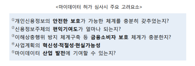 금융위원회는 마이데이터 사업자로 허가를 받기 위해서는 법령상 최소 자본금 5억 원 이상, 물적설비, 주요 출자자 요건, 사업계획의 타당성 등의 요건을 갖춰야 한다고 밝혔습니다. 금융위원회는 신청업체가 안전한 데이터 활용능력 보유 여부를 판단하여 허가를 결정하게 되며 세부요건은 아래와 같습니다.