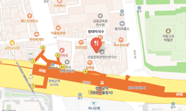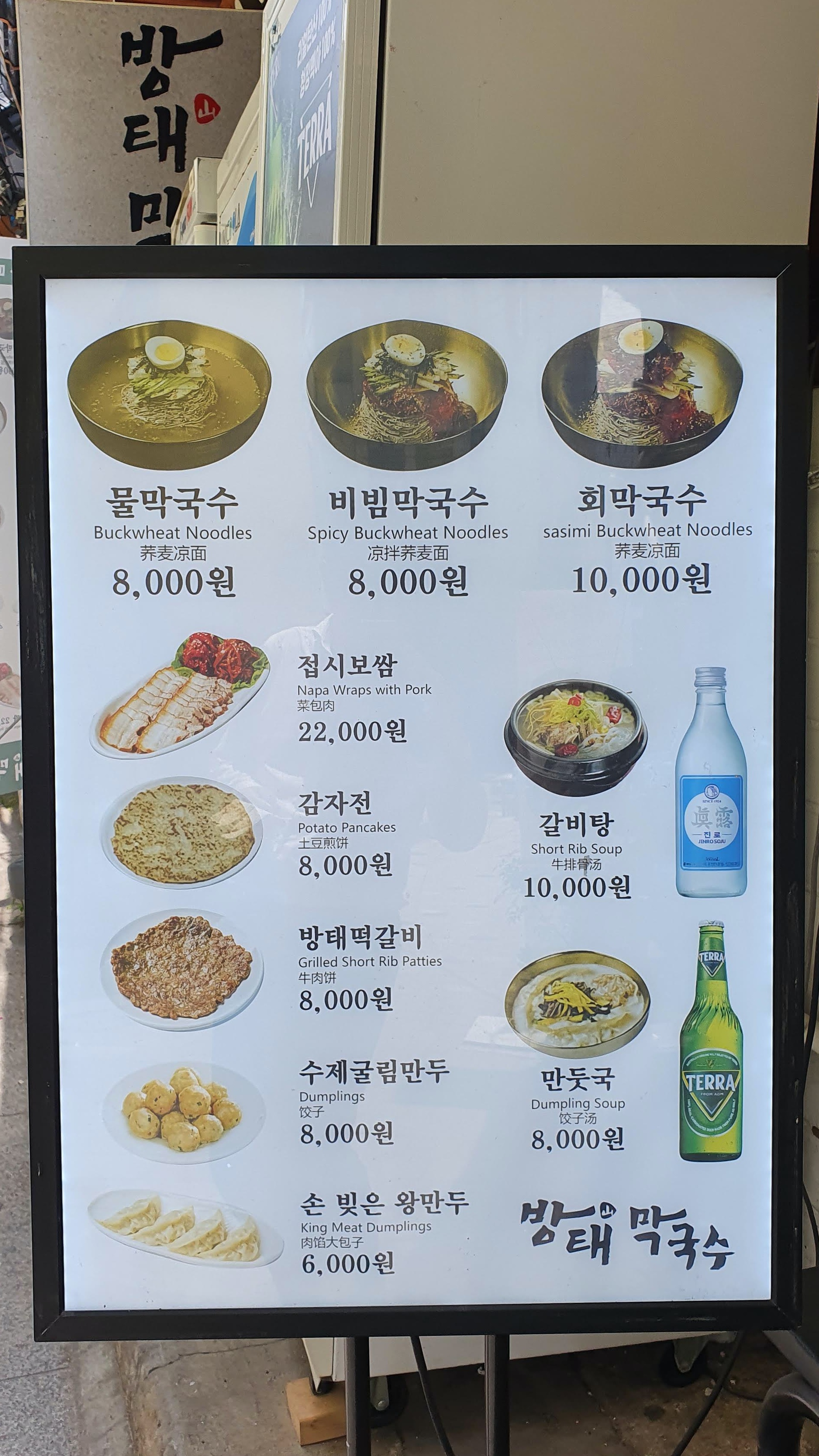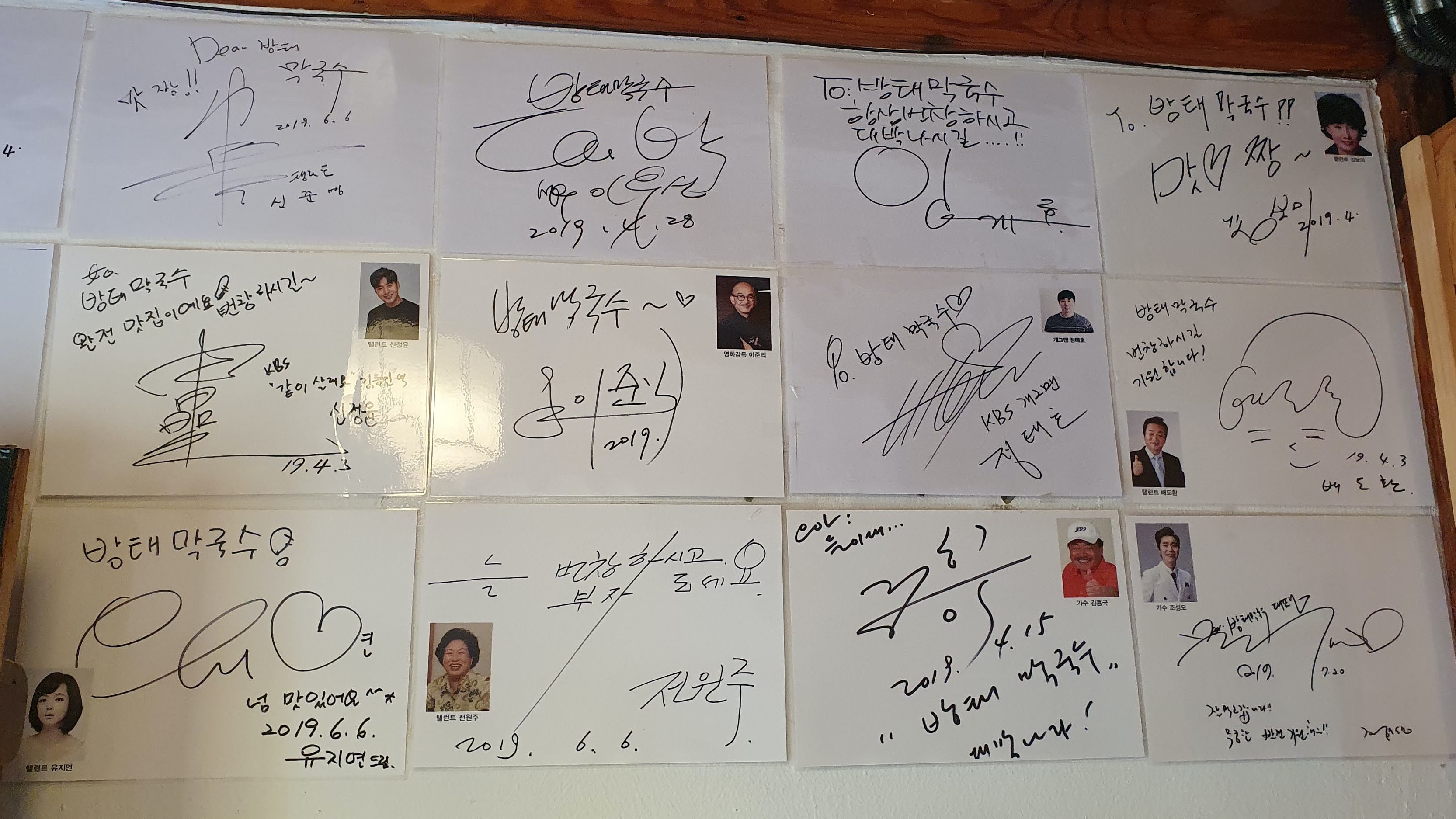 경복궁역 맛집 방태 막국수는 경복궁역 4번 출구를 나오면 보이는 삼백집 골목 50미터 안쪽에 위치해 있는데 요즘 같은 시즌에는 점심시간에 조금만 늦게 가도 줄을 서야 하는 맛집입니다. 입구에 걸려 있는 유명인들의 사인을 보면 얼마나 유명한 맛집인지 실감할 수 있습니다.