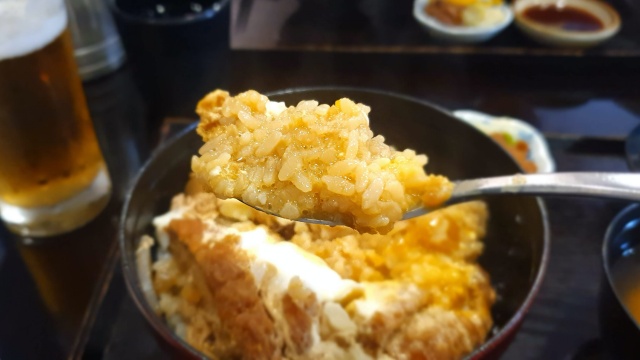 간자바이린에서 히레카츠 못지않은 인기 메뉴는 카츠돈입니다. 일본지역 돈카츠 덮밥 1위에 빛나는 메뉴답게 부드러운 안심 위에 올려진 영양란과 특제소스와 비벼 드시면 아주 맛있습니다.