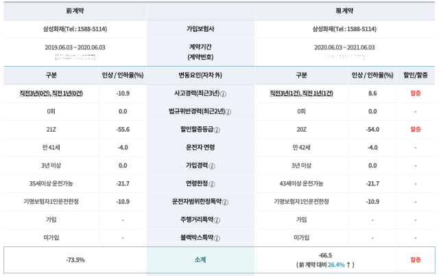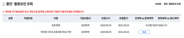 자동차 보험료 할인・할증요인 조회 시스템에 로그인을 하면 자동차보험 만기가 많이 남은 운전자는 전계약과 현계약의 보험료 할인 할증 내역 조회가 가능하고, 만기가 1달 이내인 운전자는 추가로 현계약과 갱신계약의 예상 보험료 할인 할증 내역을 조회할 수 있습니다.