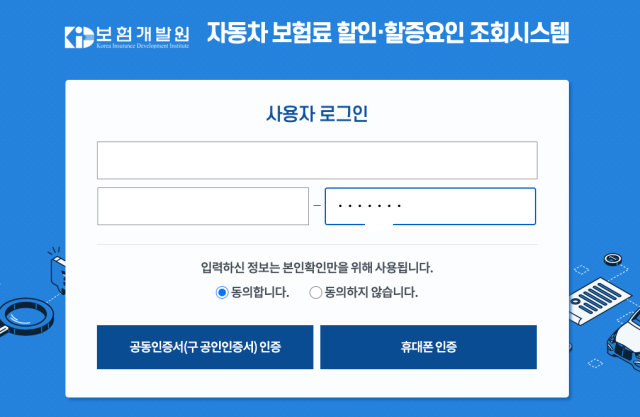 이에 따라 보험개발원이 공인인증서나 문자메시지 등으로 간단히 본인확인을 거치면 운전자 본인의 차량번호, 차종 및 보험가입(보험사명, 보험기간 등) 정보를 확인할 수 있는 자동차 보험료 할인・할증요인 조회 시스템을 개발했습니다.