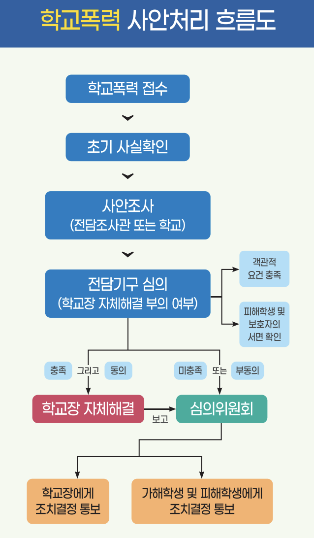 학교폭력 가해자로 억울한 누명을 썼을 때에는 학교폭력 사안처리 흐름도에 따라 단계별로 침착하고 체계적으로 대응해야 합니다.